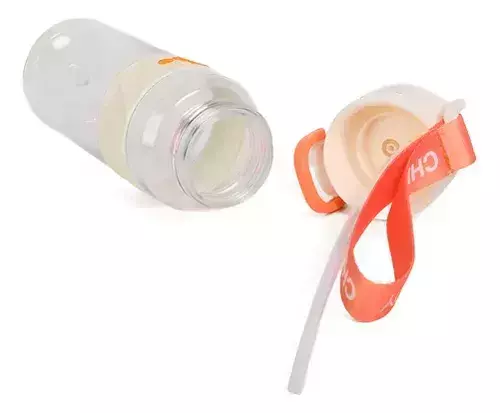 Su diseño funcional incluye sorbete interno y tapa a presión con doble botón de seguridad, ideal para llevar en la mochila sin preocupaciones. Además, su cuerpo transparente con detalles soft-touch y banda antideslizante la hacen cómoda y segura durante todo el día.
